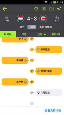5、详细数据:涵盖比分直播、进球(点球/乌龙/加时赛等)、红黄牌、换人、球队阵容、球员信息、赛后统计等。