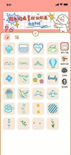 拥有原创新颖可爱的手帐贴纸、背景、画笔素材,且持续更新。