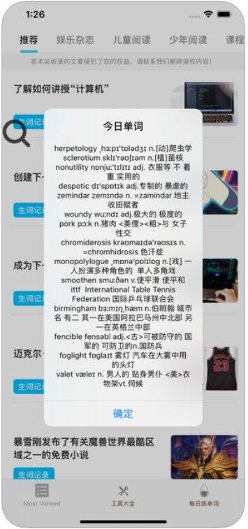 用户可点击不认识的单词和句子进行翻译,自由阅读感兴趣的内容,实现快乐学英语。