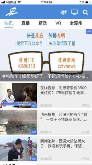 《漳视新闻》是地区性新闻资讯软件,能让用户轻松看到漳州本地新闻头条,还可收看漳州电视节目并支持回放,专为漳州本地用户服务。