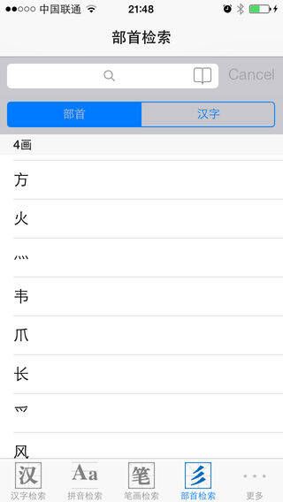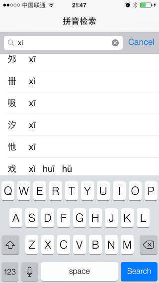 强大的查找功能:支持手写输入、汉字检索、简拼检索、首字匹配检索、尾字匹配检索和模糊检索。