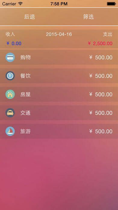 【轻松记账】简单下拉即可完成记账,整个过程不到2秒,轻松记录收支情况。