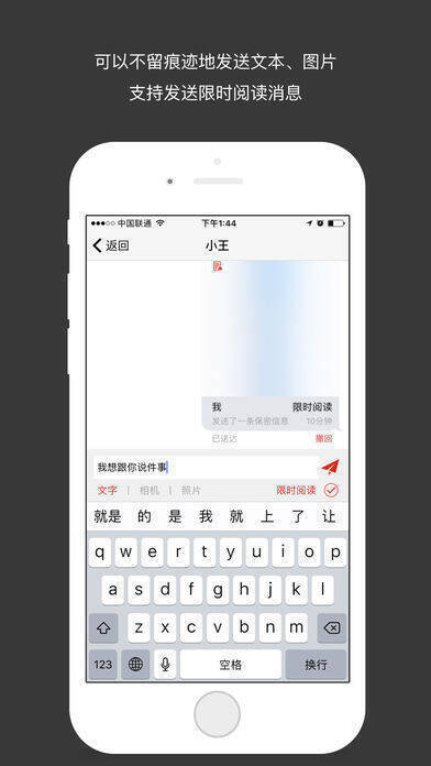 【限时阅读】发送的加密信息在10分钟内可以阅读,超过限时则无法阅读,随后自动销毁。