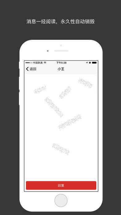 4、密讯所发送的消息,只能由接收者读取一次,读取完成后会自动销毁该条消息记录,彻底抹除。