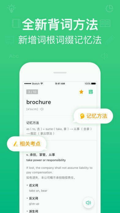 在收录新GRE核心词汇及同反义词的基础上,增添了词根词缀记忆法。实现新词学习与旧词复习有机结合,是效率极高的GRE背词应用。