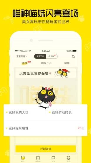 喵喵玩app作为游戏陪玩平台,你能找美女高手陪玩各类竞技游戏,满足多样的陪玩需求。若你是游戏高手,可申请成为喵神开黑赚钱;若不是,能找高手帮你升级上分。它是专业的移动端电竞娱乐社交APP,操作高效简便,连接普通用户与高端玩家,实现随时开黑上分、娱乐社交。
