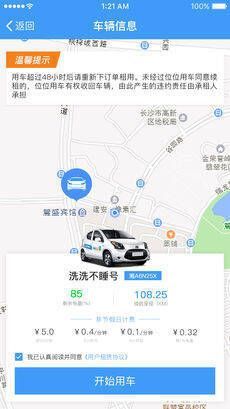 成功租车开门上车后的前三分钟免费,方便用户了解车辆操作。三分钟后按正常租车价格计费。