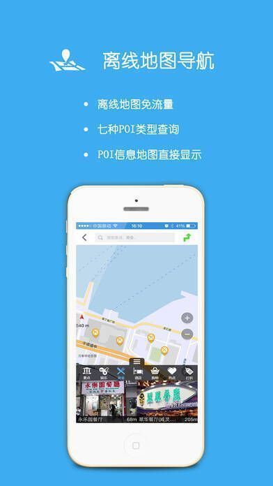 导航地图:采用离线地图设计,查位置、目的地导航不耗流量,找路无需他人帮忙。