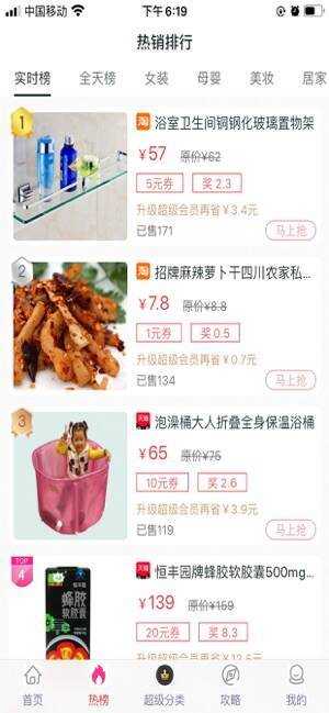 3. 有各种团购商品、优惠券以及限时特价商品,大牌商品也有美丽的价格,让你购物无压力。
