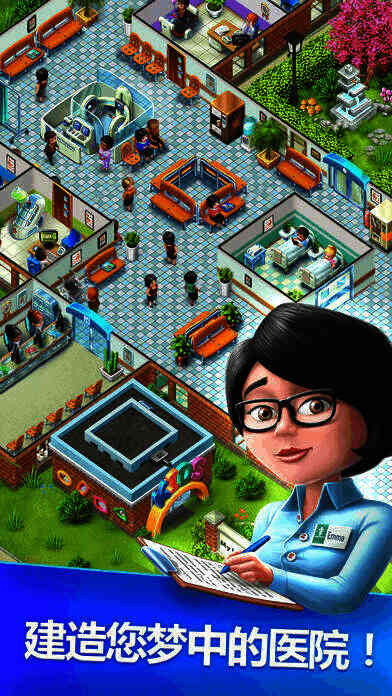 建造并管理自己的医院,设立医生办公室、诊断室、治疗中心和实验室,不断扩建升级,与朋友分享。