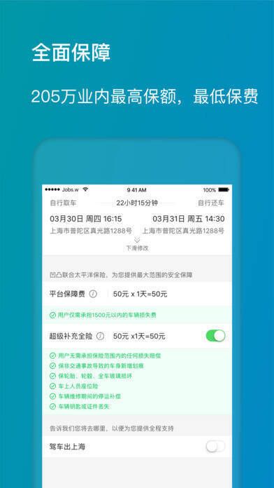 - 【高额保险】:太平洋保险入股,提供业内最高205万租车险及全时况道路救援。