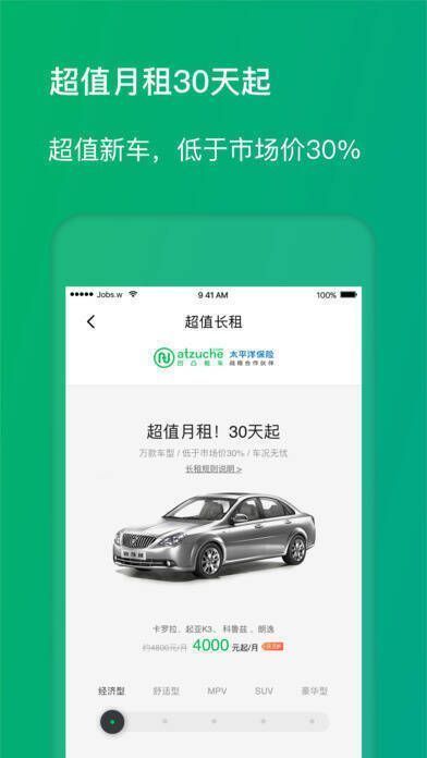 承诺“租贵就赔”,给您惊爆低价;采用场景找车新模式,智能推荐适配车辆;免费提供取还车、洗车及送车上门服务。