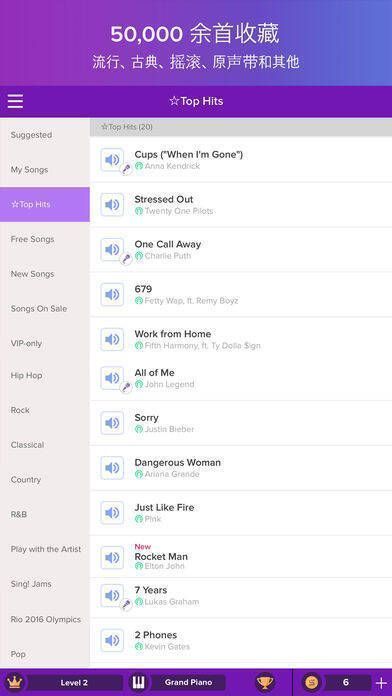 1、能从所有钢琴音乐程序中最大的曲目分类里进行选择,应用还会经常更新最新、最流行的音乐。