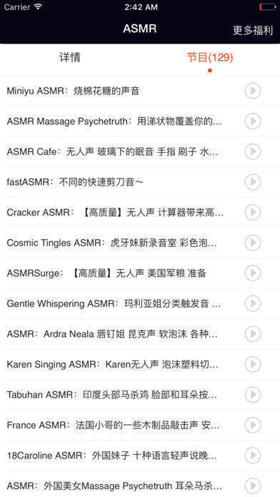 1、该软件汇聚大量ASMR录音,涵盖国内外众多ASMR女主播的作品。戴上耳机,这些录音会让人仿佛置身自然环境,不知不觉进入梦乡。