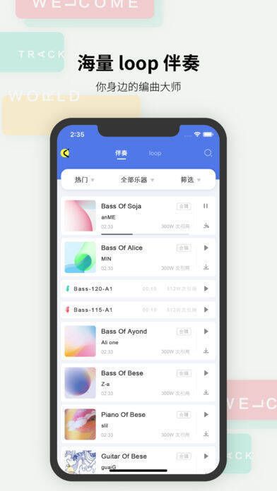 2、添加 loop 伴奏:海量的 loop 伴奏素材,为你的创作提供灵感。