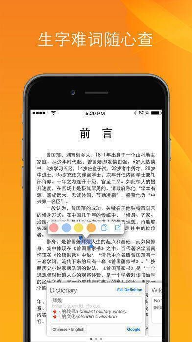 6、轻松选择标注颜色,支持大段章节的跨页标注,无需翻阅多页;