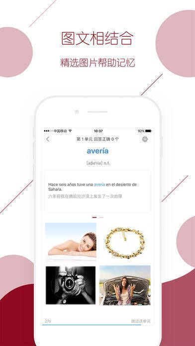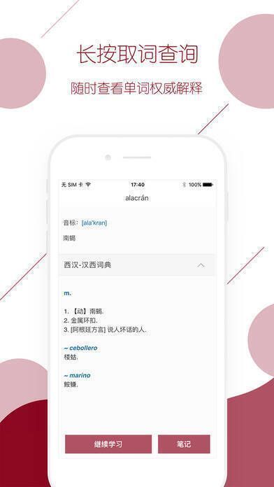 4、在线搜索:与西语助手完美适配,云端词典随时查询,生僻词、例句、图片查询一步到位;