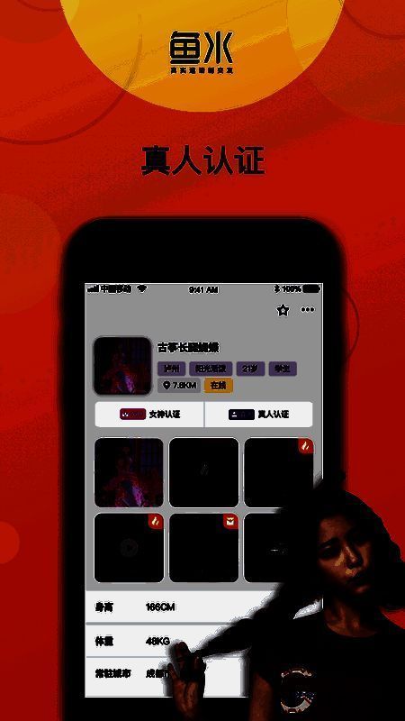 1、鱼水交友平台上所有用户信息都真实有效,经过刷脸和信息审核认证。