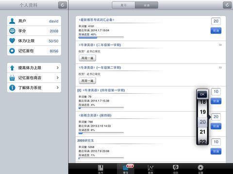 该应用能够统计您的总背诵时间、复习时间以及真实的词汇量。其中,真实词汇量对您背过的单词进行了去重去词组处理,让您直观看到自己的学习成果。例如,花费48小时背单词,就能增加3000英语词汇量。