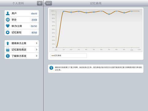 基于艾宾浩斯记忆规律,软件会及时提醒您复习即将遗忘的词条。其参考了《17天搞定GRE单词》里提到的记忆间隔以及supermemo的记忆规则。