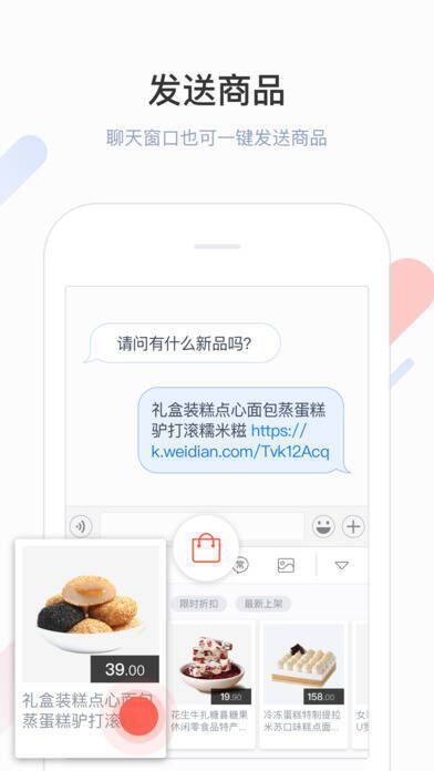 【店铺商品】点击商品即可发送,长按还能分享,让商品介绍变得更迅速。