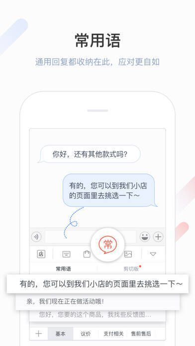 2、可设置常用语关键字,输入关键字即可快速发送对应常用语,适用于店铺宣传、商品介绍等。