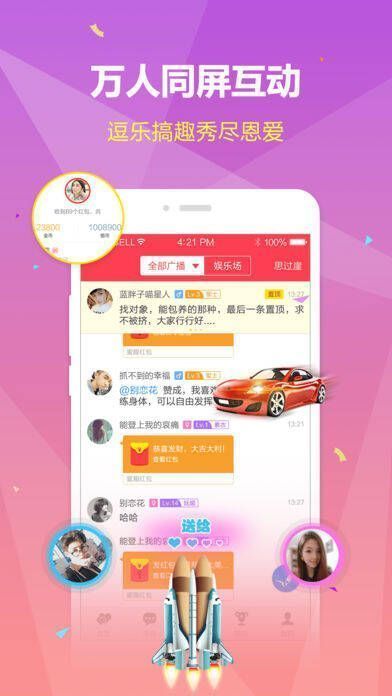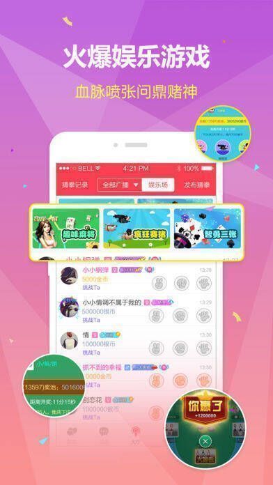 2、拥有万人同屏聊天室,可参与火爆刺激的抢红包活动,炫酷土豪刷礼物,还能体验血脉喷张的争赌神玩法;