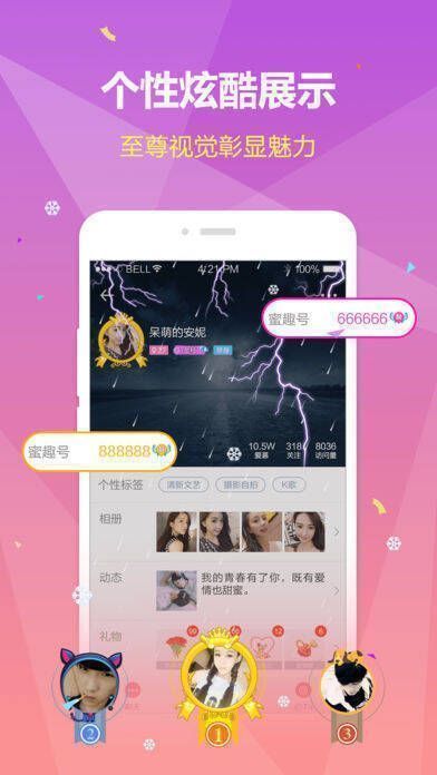 1、有各种两性私密话题,支持语音聊天、交友互动、游戏娱乐、恶搞技能、恋爱测试等多样猎艳方式;