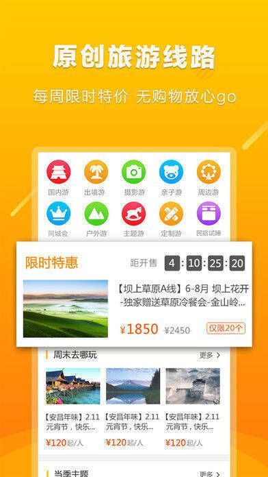 - 一键预定跟团游,省去订票、订酒店等繁琐流程,旅游更省心。