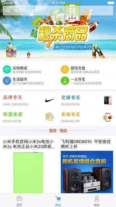 2、【电子商城】用户可通过手机 app 在点屏商城兑换生活物品,也能在 wap 版商城进行购买。
