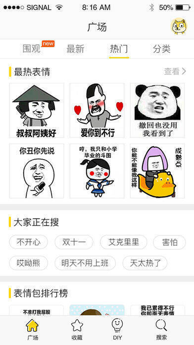表情广场软件让你在朋友圈斗图毫无压力,不用愁表情包资源,且每日及时更新,让斗图更畅快。感兴趣的朋友赶快下载吧!
