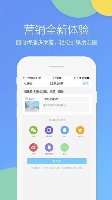 易企秀APP存有海量模板,能让你随时制作、即时传播。它可以一键生成动态音乐相册、节日贺卡、邀请函、产品介绍、企业宣传、公司招聘等各类场景页面,还能在微信、微博、朋友圈、QQ等多个渠道进行推广。同时,它提供特效、动画等丰富的高级操作,让你能随时随地查看场景的浏览数据,收集表单数据从而与客户建立紧密连接。