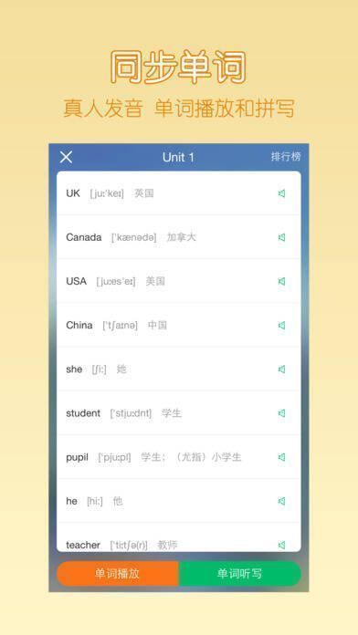 2、教材单元同步单词,有真人发音,支持单词播放和拼写;