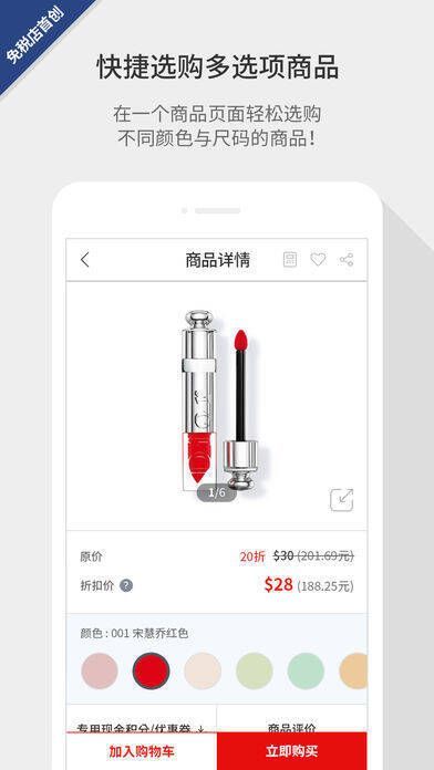 2、便捷商品选购:能在同一商品页面轻松选择不同颜色和尺码的商品;