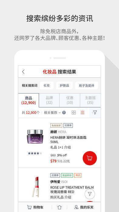 5、丰富资讯搜索:除了免税店商品,还能获取各大品牌、顾客优惠及各类主题的丰富资讯;