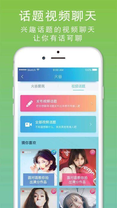 3、话题视频聊天:摒弃低俗无聊的视频直播,基于热门话题进行一对一深入聊天。用户可发布有趣话题,让感兴趣的用户加入交流,强调趣味相投而非颜值。