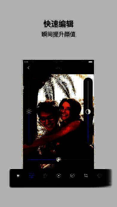 支持iOS9,在该系统上表现卓越,快捷、流畅、清晰又有趣;界面简洁直观,能快速切换多种拍照效果,轻松使用滤镜;提供众多精美滤镜,拍照或编辑时可实时预览效果;高清拍照,细致展现精彩生活。