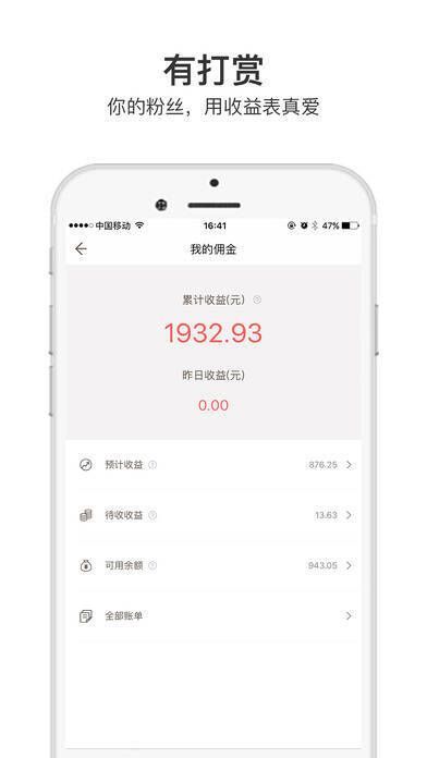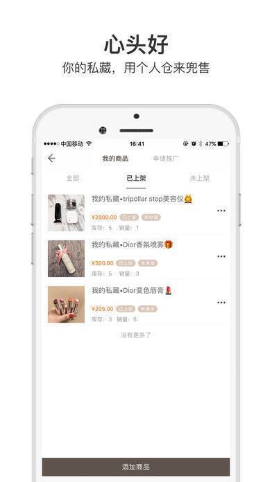 轻松拍张照片,购物车就能轻松嵌入;轻轻一点,众多商品任你添加;一键分享成交即可获得佣金。