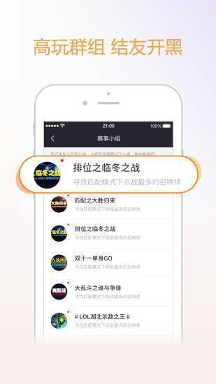 软件特色丰富,有APP专属的英雄联盟赛事,一键即可报名;可快速定位附近网吧,实现同吧竞技与聊天;还能在赛事小组和大神零接触交流。