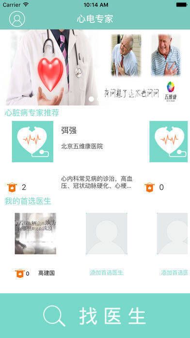 《找心电专家》是一款专为病人打造的 app。用户能够借助这款 app 与医生就病情进行咨询和交流。用户可查阅到的医生均是来自各大医院且自主注册该 app 的优秀医师,公司会对他们进行严格调查,审核通过后才可上线。