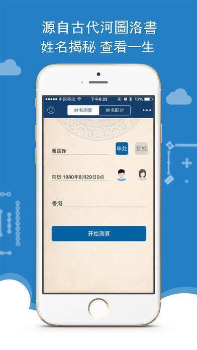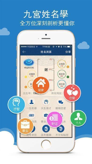 该软件源于古代河图洛书原理,全新引入台湾热门的九宫姓名学,可从姓名洞察一生的事业、工作、财运、感情婚姻、姻缘桃花、流年运势以及男女配对合适度等。它并非“宿命论”,而是助力用户创造人生价值,了解自身优缺点,通过自我训练调整,发挥长处、改善短处,把握运势,积极经营人生,迈向成功。