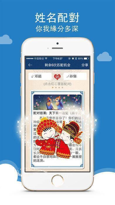 3. 姓名配对,精准探寻两人缘分,让感情不再迷茫,准确率达99%。