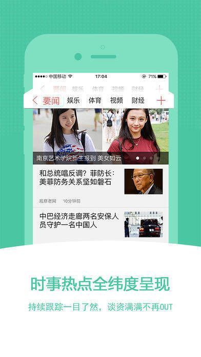 【要闻频道】传统新闻客户端的内容都能在搜悦的“要闻频道”找到。点击进入要闻首页,涵盖热点要闻、娱乐、社会、体育、财经、美女、视频、图集、科技、国际、知识科普、情感、历史、军事、教育、房产、段子、搏击等多元板块,实时聚合时事热点,7×24 小时不间断更新,为用户带来最新的新闻现场资讯。重大、突发新闻会及时推送到用户手中,还能通过热点专题详细呈现。