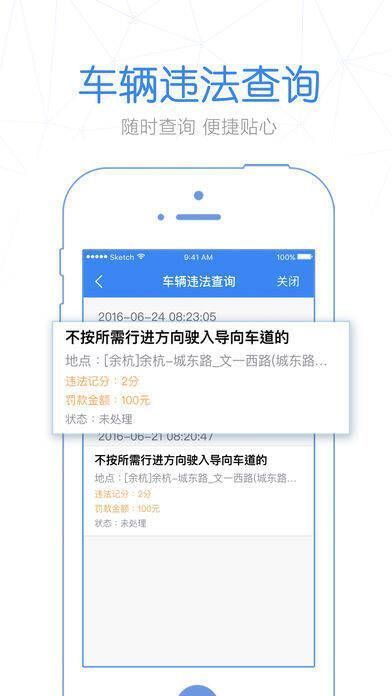有了这款应用,杭州车主处理违章时,无需再像以往那样拿着证件专门前往交警队排队、扣分、交罚款。只需在 APP 里查询到违章信息,轻点“去处理”,它就能在线帮您完成扣分和缴款。若爱车有违章,根据注册信息,在 APP 里一查便知,点“去处理”并选择支付方式即可搞定。此外,它还具备在线缴罚、不当停车提醒、车辆违法举报、出入境预约、新闻中心、违章查询等功能。