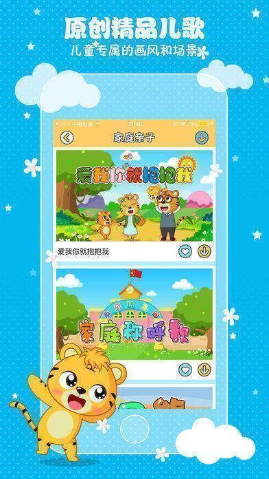 3、涵盖律动儿歌、亲子儿歌、中文儿歌、英文儿歌以及经典动画片主题音乐;