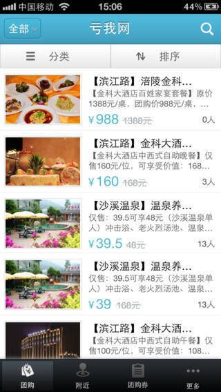 1、首页团购,包含丰富多样的团购商品,从美食到酒店,应有尽有;