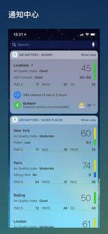 2. 支持查询超 50 个国家、10000 多个监测点的空气质量信息,可根据位置显示最近监测点数据。