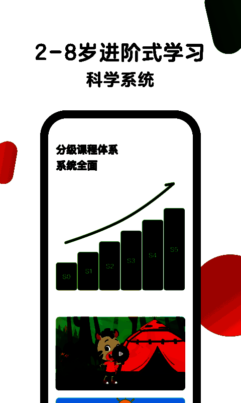 2、依据孩子年龄与学习行为特点细分学习阶段,难度呈螺旋式上升,拥有独家少儿行为大数据。