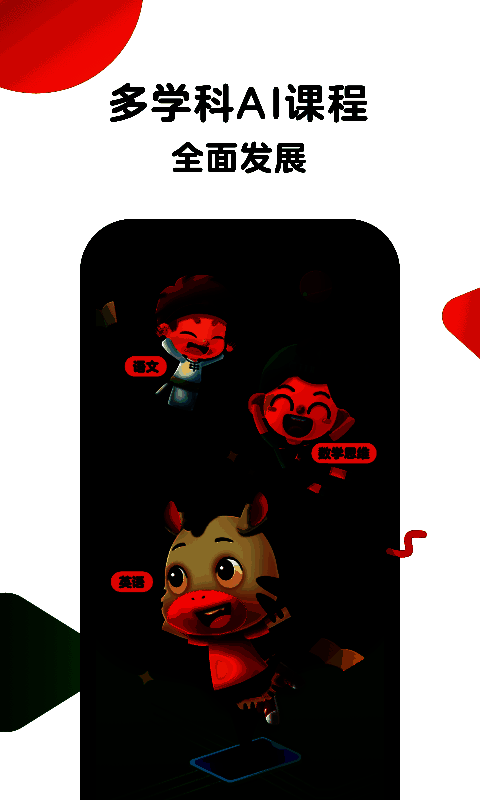 3、目前拥有英语、数学思维、语文等多学科的AI课程产品,为孩子提供成熟的学习系统。