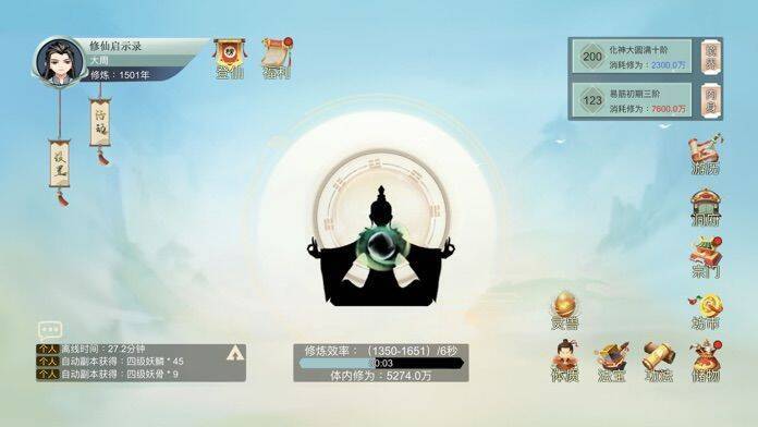 1、玩家可通过多样历练提升功法,进而获得更优属性奖励。